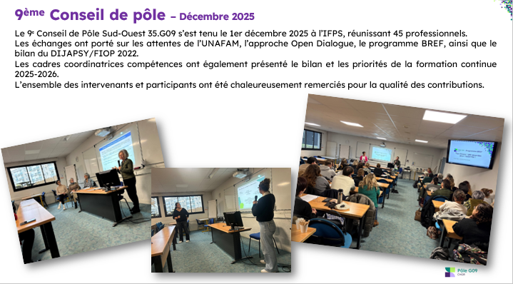 Présentation du pôle, des échanges constructifs et amusants . Merci à tous les participants.